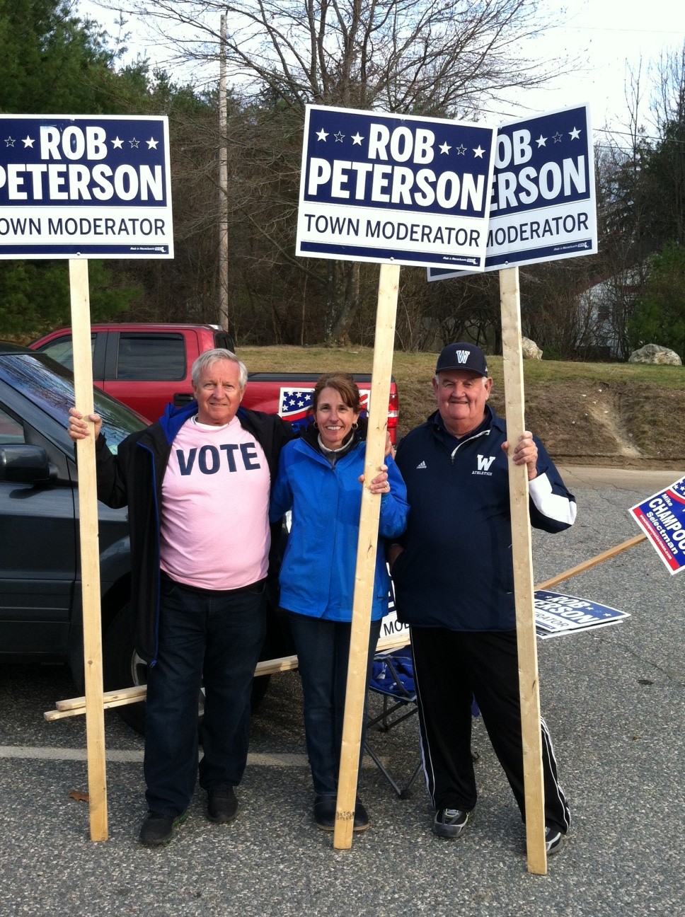 April 25, 2015 Wilmington Election Results — Peterson Edges Martinson; Champoux Crushes MacDonald 968 × 1296 Peterson supporters at Wildwood A group of Peterson supporters, including Shawsheen Tech School Committee member Jim Gillis, former Wilmington School Committee member Kim Peterson, & Jack Cushing, at Wildwood.