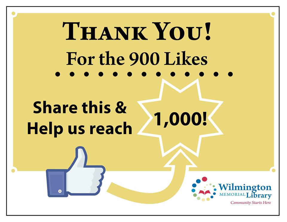 Here is Wilmington Apple’s Question of the Day for July 13: Will you give the Wilmington Memorial Library a LIKE on Facebook? The library is making a push to reach 1,000 LIKES. They’re less than 100 LIKES away from their goal! Connect for library news, event photos, book info, and technology tips. Give them a LIKE HERE.