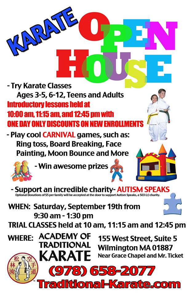 WILMINGTON, MA — Academy of Traditional Karate (155 West Street, Suite 5, Wilmington) is holding an Open House on Saturday, September 19, from 9:30am to 1:30pm.