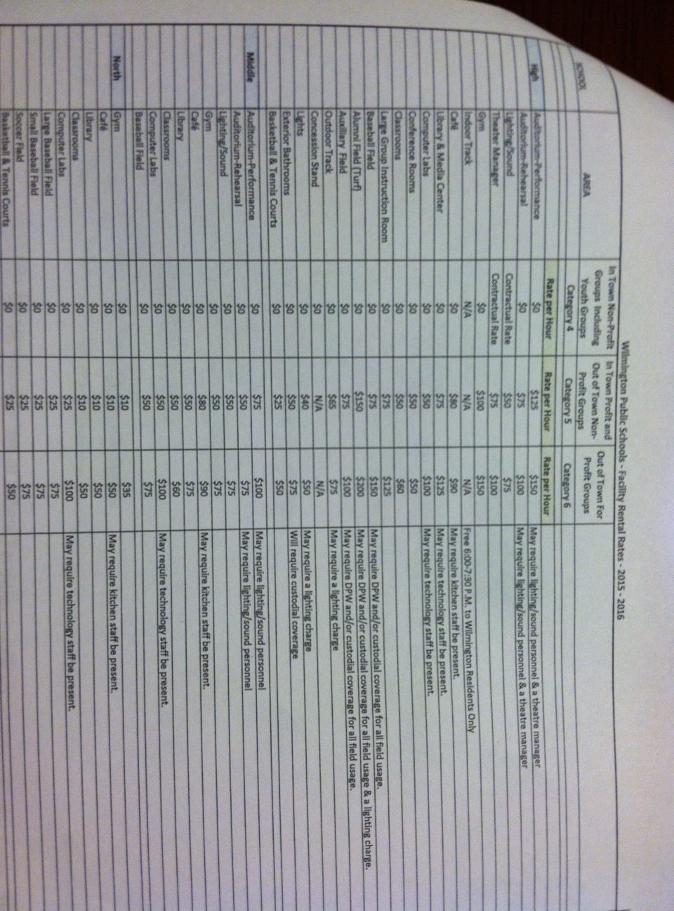 The rental rates were first looked at following the completion of the new high school. Rental rates used by other school districts was a strong consideration when setting Wilmington’s. The Town Manager’s input was also sought.