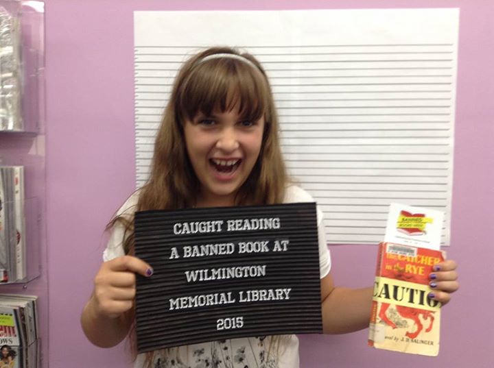 October 2, 2015 PHOTO OF THE DAY: Wilmington Library Celebrates Banned Books Week, Library Card Sign-Up Month 720 × 537 Julia – Catcher in the Rye Julia caught with Catcher in the Rye