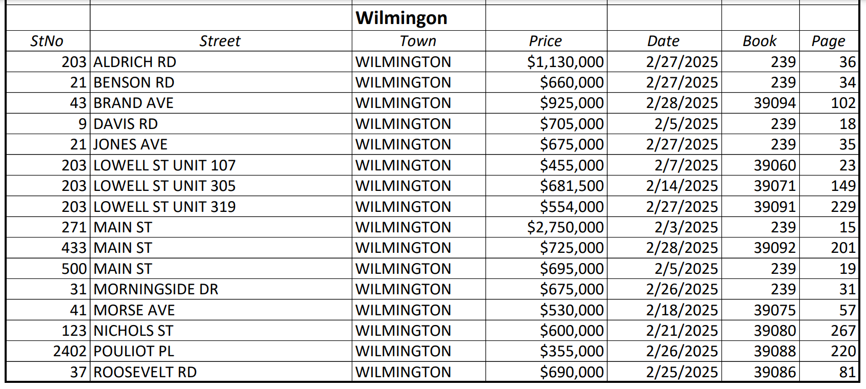 WILMINGTON, MA — According to the Middlesex North Registry of Deeds, 16 properties were sold in Wilmington during February 2025: