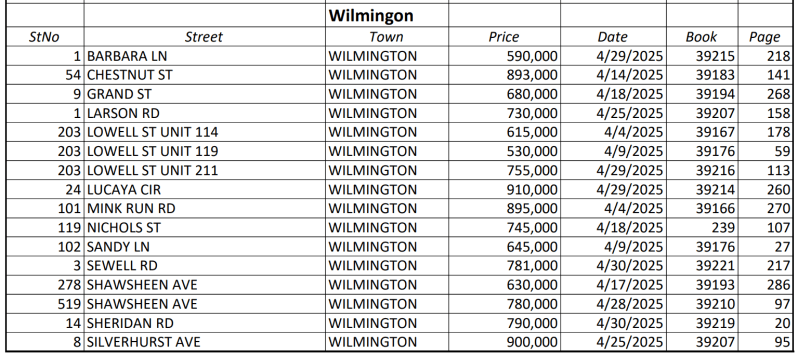 WILMINGTON, MA — According to the Middlesex North Registry of Deeds, 16 properties were sold in Wilmington during April 2025:
