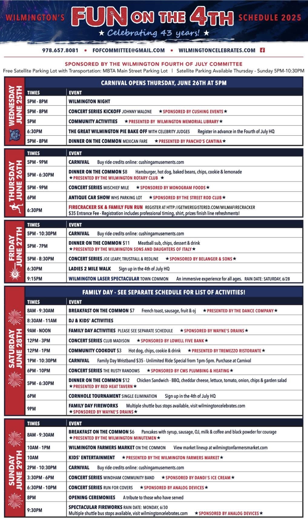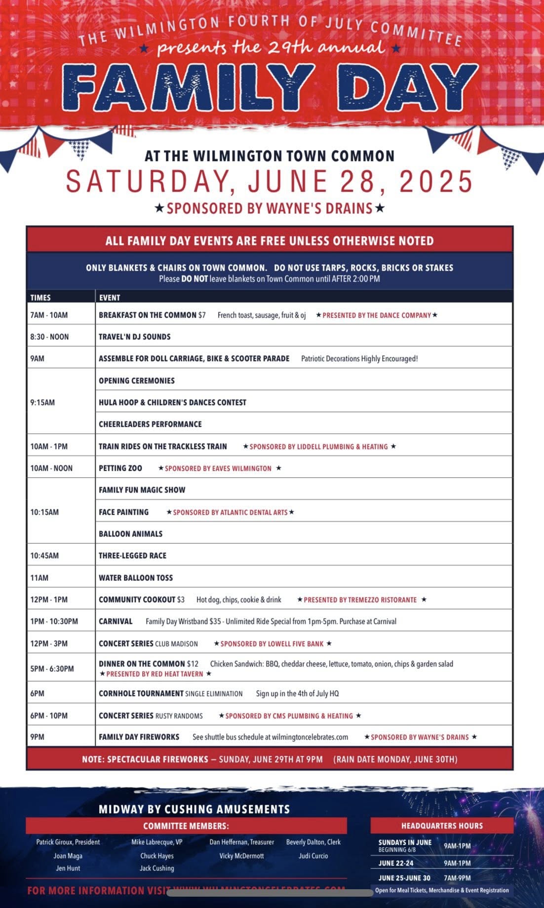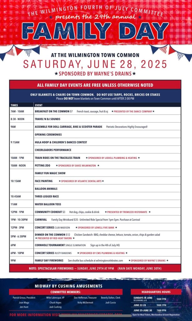The Committee also released the schedule for the Wilmington Family Day on Saturday, June 28, 2025.