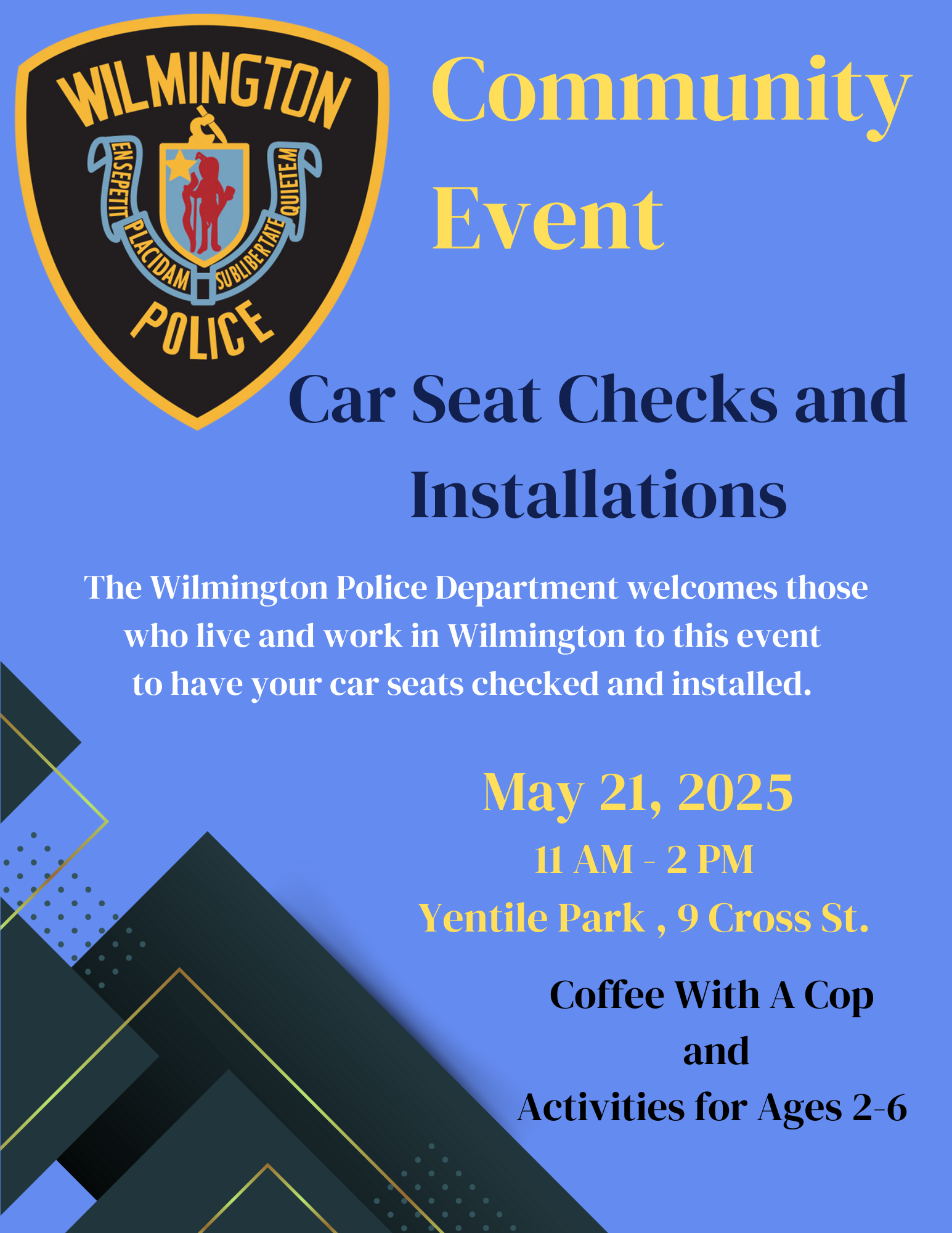 WILMINGTON, MA — The Wilmington Police Department is thrilled to invite residents to a community-focused event that combines coffee, conversation, and an important initiative to ensure the safety of our youngest residents. Join us for “Coffee With The Cops and Child Safety Seat Checkpoint” on Wednesday, May 21, 2025, from 11am to 2pm, at the Yentile Farm Recreational Facility.