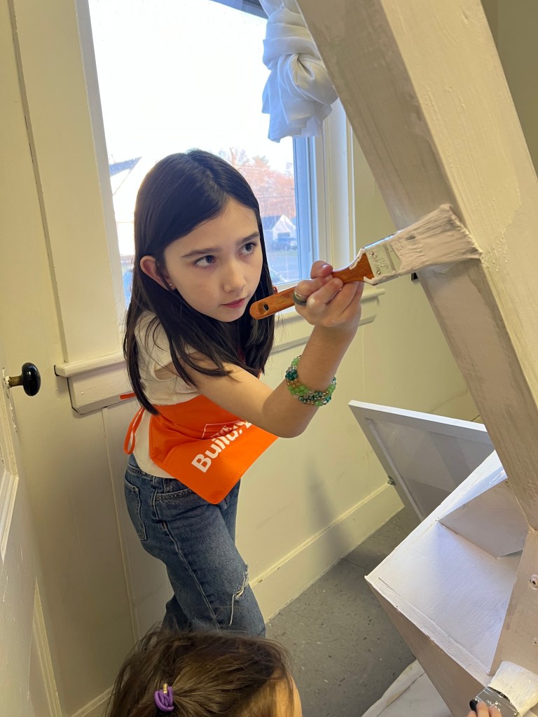 Getting the Mini Food Pantry ready is Marvel demonstrating her skills with a paint brush.