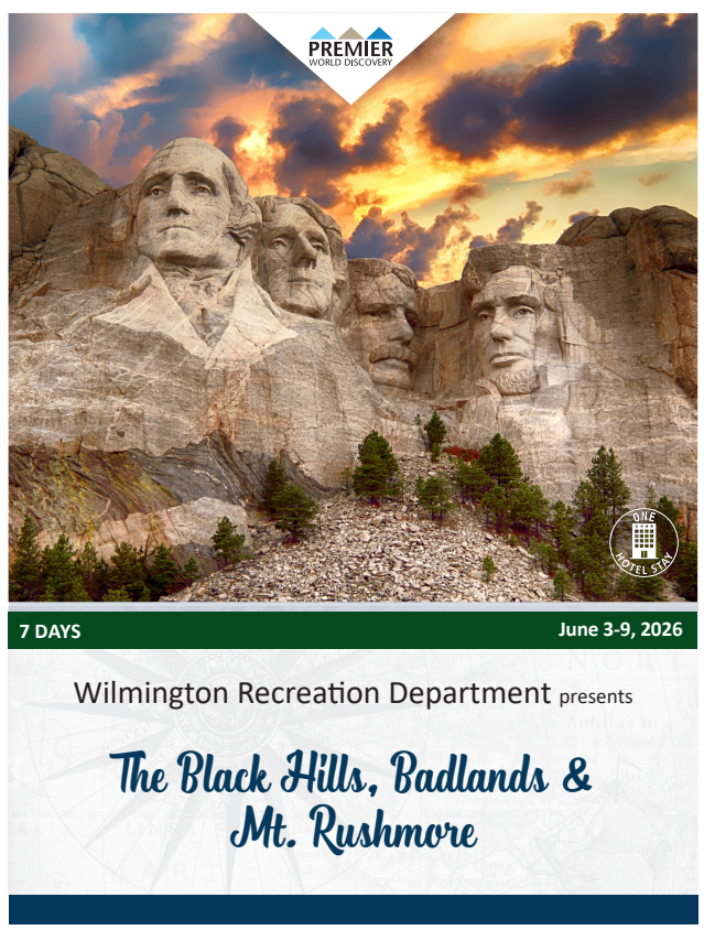 WILMINGTON, MA — The Wilmington Recreation Department is offering a 7-day trip to the Black Hills, Badlands, and Mount Rushmore from June 3, 2026 to June 9, 2026. The trip costs $4,715 for a single; $3,915 per person for a double; and $3,845 per person for a triple. Learn more HERE.