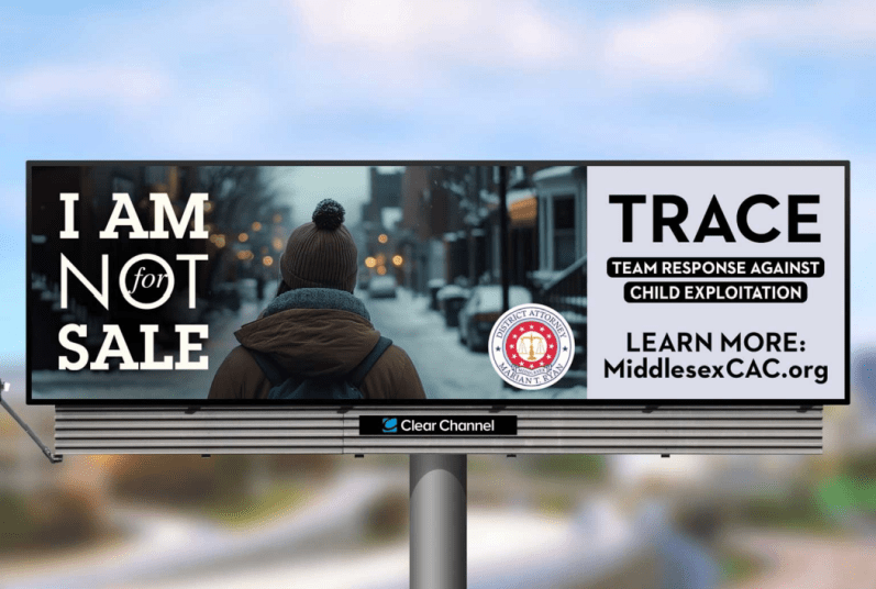 From January 5 to February 1, on Interstate 95 North in Woburn drivers will see billboards reminding them that children are “not for sale.” It will also directs viewers to information regarding warning signs, key indicators and available resources.