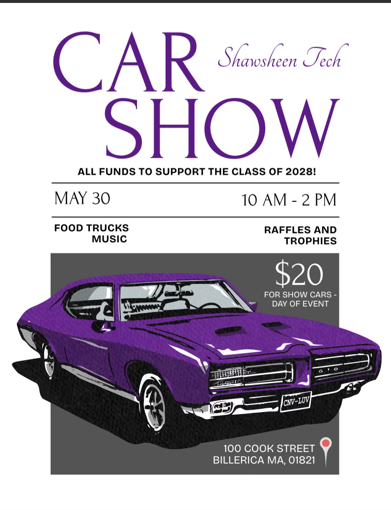 BILLERICA, MA — The Class of 2028 at Shawsheen Valley Technical High School is hosting its First Annual Car Show on Saturday, May 30, 2026, from 10am to 2pm, outside the school (100 Cook Street, Billerica).