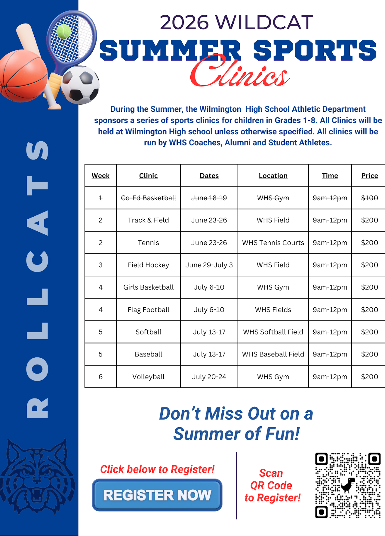 Please make checks payable to Wilmington High School Athletic Department. Write your child’s name & clinic(s) in the memo section.