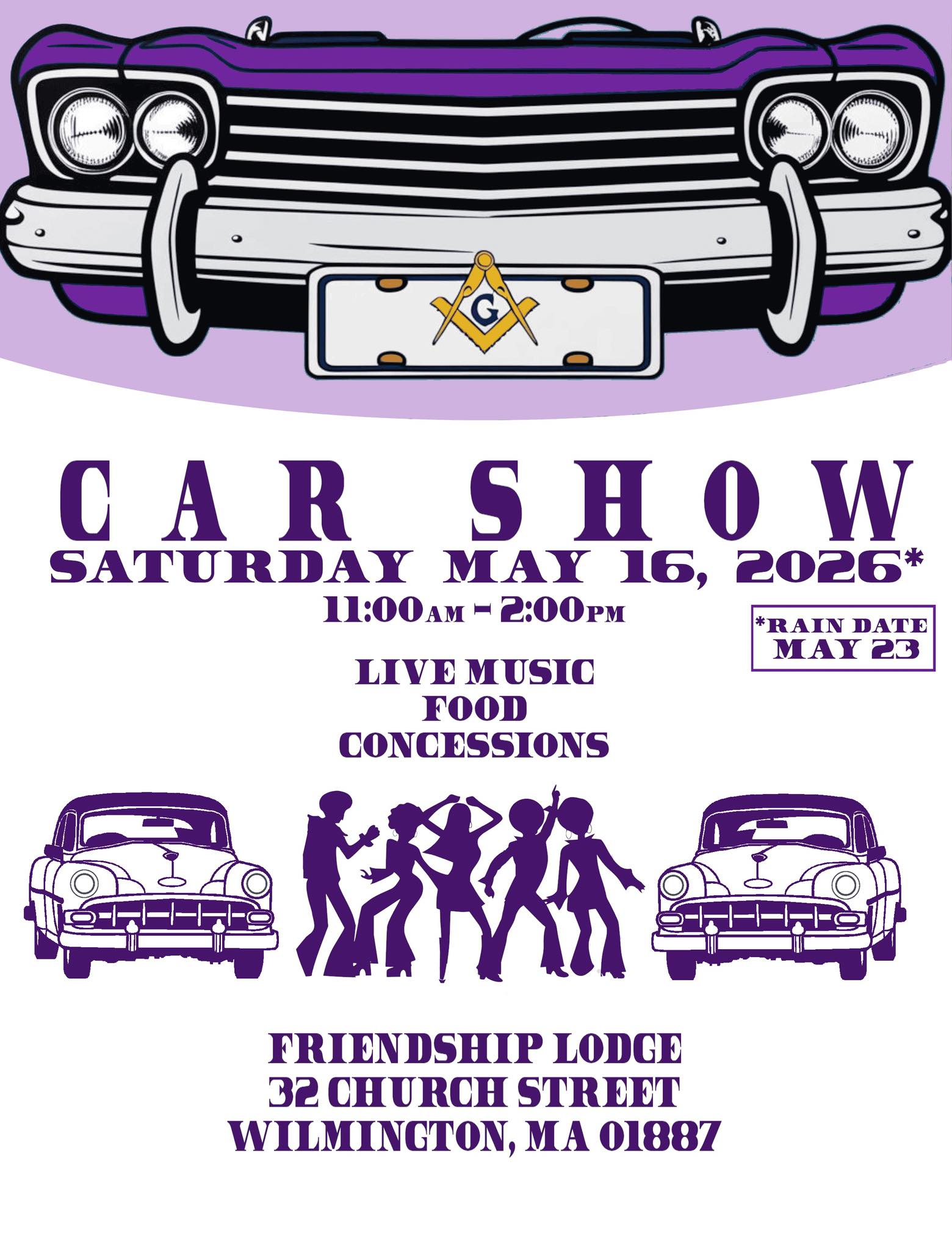 WILMINGTON, MA — The Friendship Lodge (32 Church Street) is hosting a free Car Show on Saturday, May 16, 2026, from 11am to 2pm.