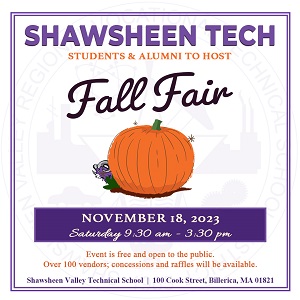 by Robert Hayes Posted on November 13, 2024November 14, 2024 Shawsheen Tech To Host Annual Fall Fair On November 23 Read More