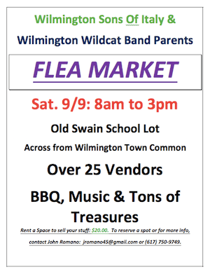by Robert Hayes Posted on September 7, 2022September 8, 2022 THIS WEEKEND: Wilmington Sons of Italy & WHS Band Parents To Hold Huge Yard Sale On September 10 Read More