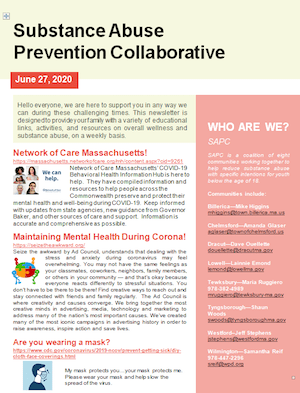 by Robert Hayes Posted on June 28, 2020June 28, 2020 Read Wilmington’s Substance Abuse Prevention Collaborative’s Latest Weekly Newsletter Read More