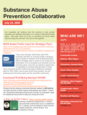 by Robert Hayes Posted on July 14, 2020July 15, 2020 Read Wilmington’s Substance Abuse Prevention Collaborative’s Latest Weekly Newsletter Read More