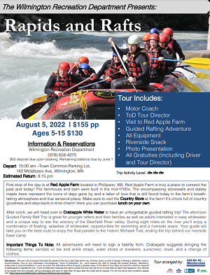 Wilmington Recreation Department To Offer ‘Rapids & Rafts’ Day Trip On August 5