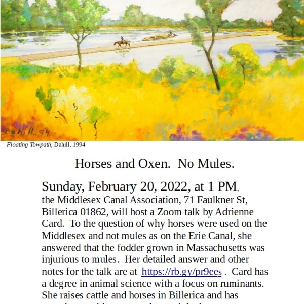 by Robert Hayes Posted on February 17, 2022February 18, 2022 Middlesex Canal Association To Hold Winter Meeting On February 20 Read More